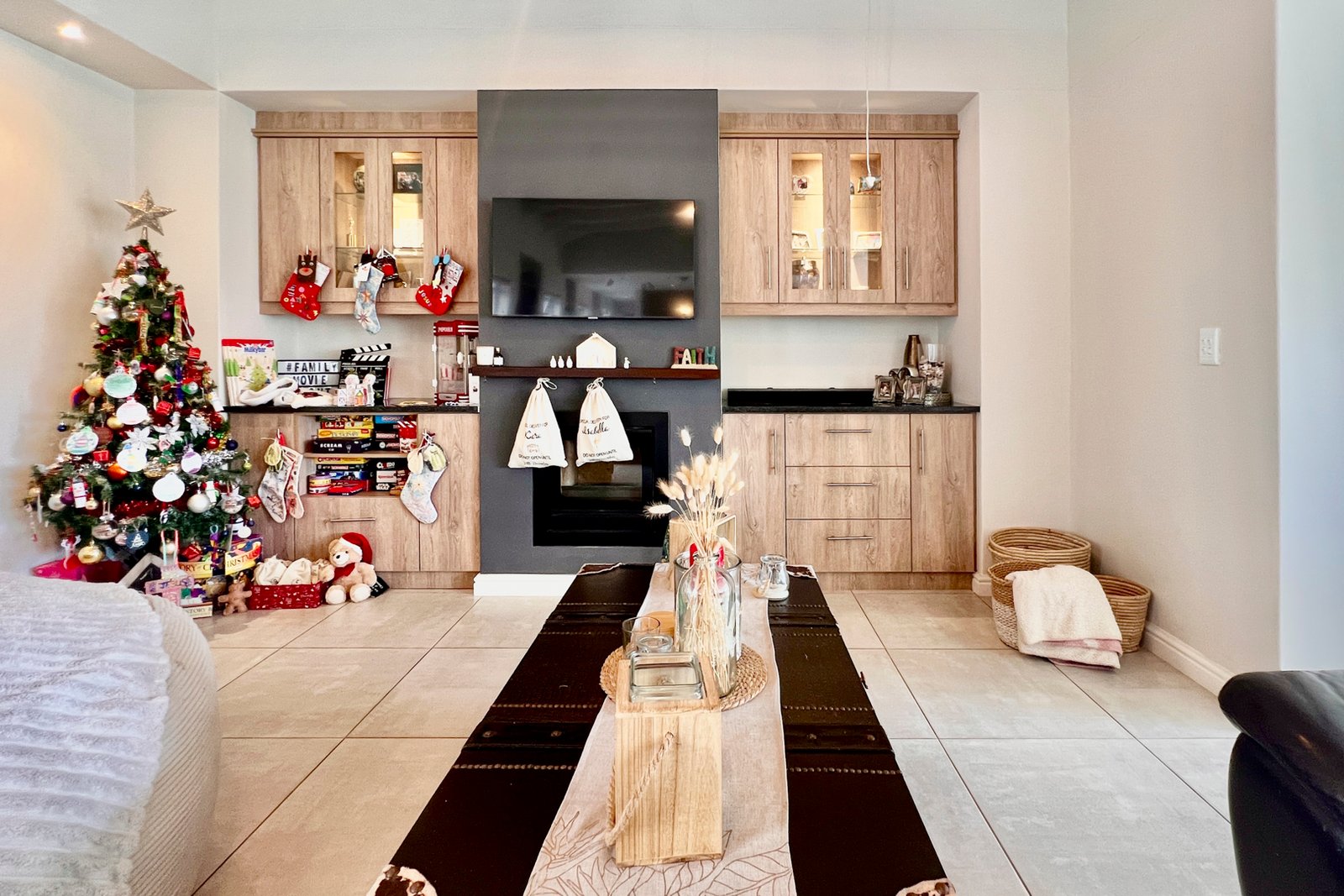 Cozy up to the indoor fireplace or gather around the built-in braai/fireplace.