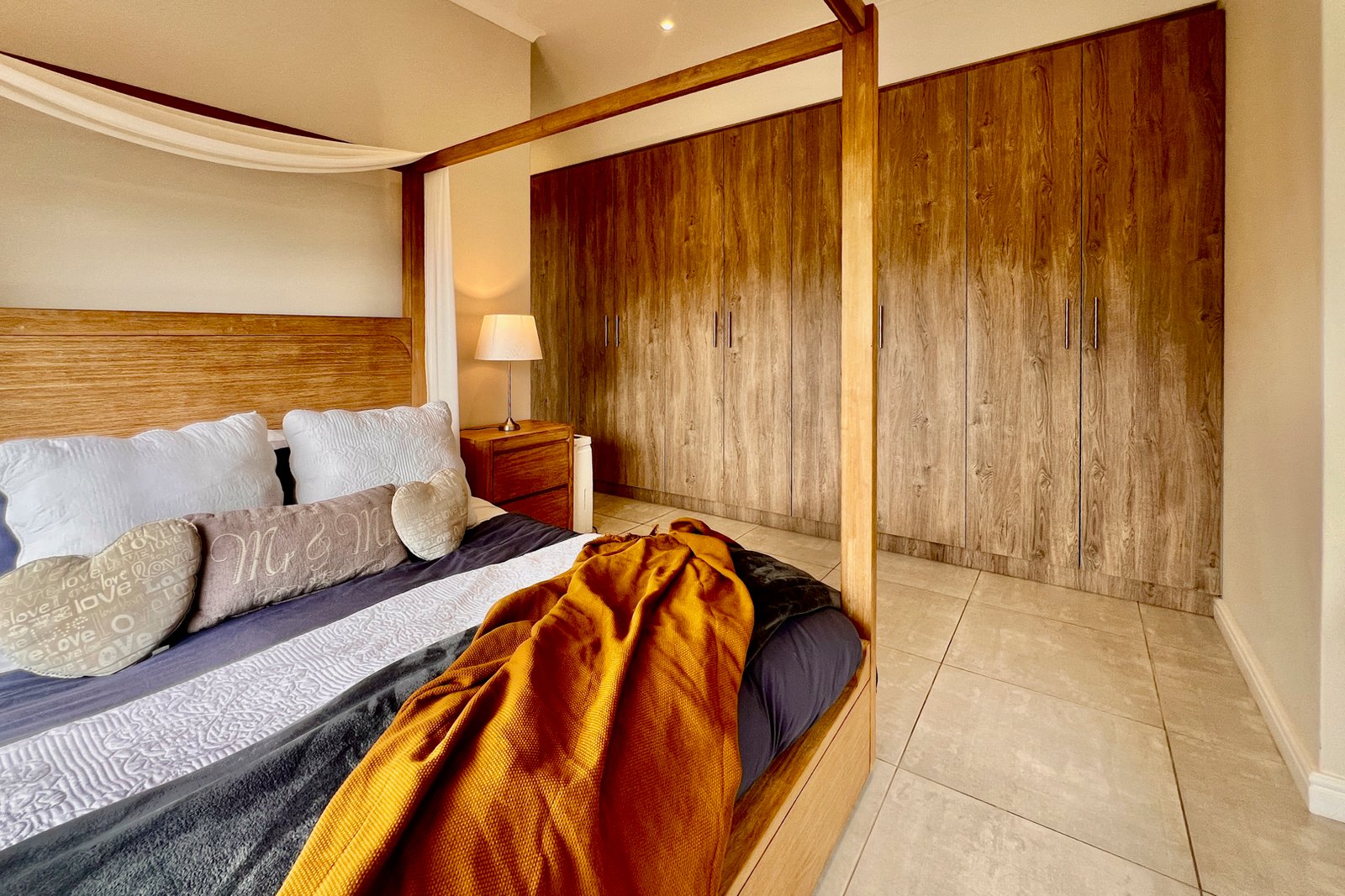 An automated double garage with direct access, complete with extra cupboard space for storage plus a golf cart garage.