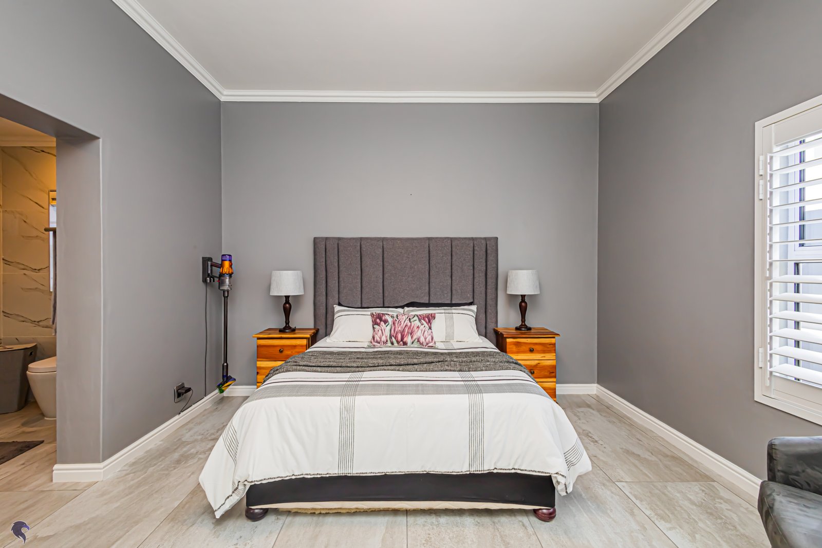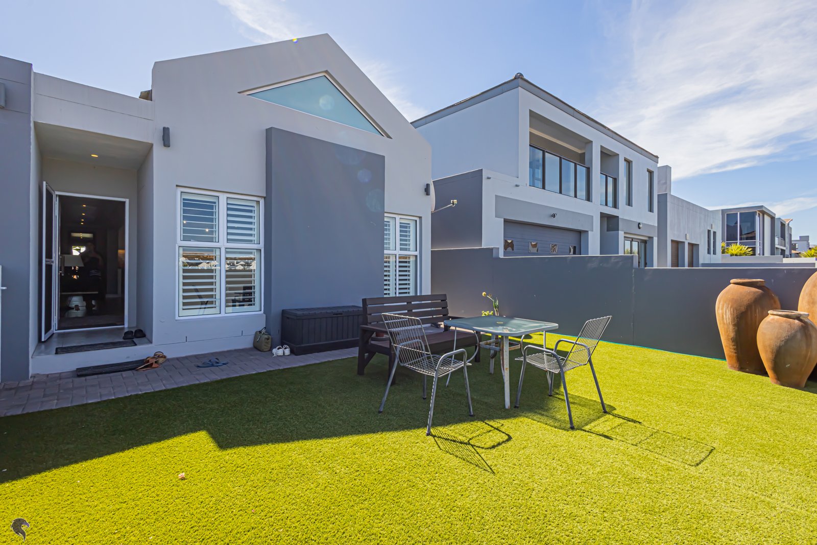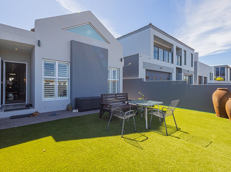 Outside, you’ve got a cute low-maintenance garden with artificial grass, so no mowing and no fuss — just a tidy little space to enjoy your morning coffee. And yes, there’s even an inverter, because life should stay switched on no matter what Eskom decides. And, just when you think that’s it, the entire home has been fitted with stackable shutters