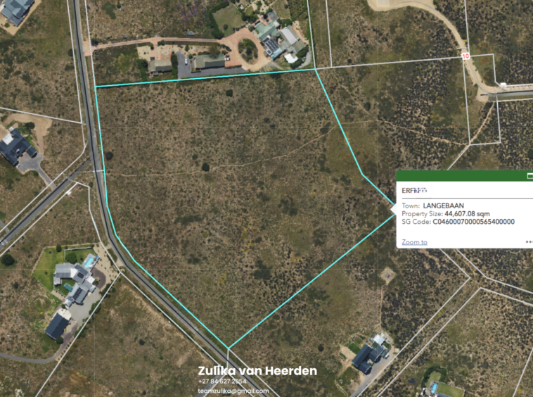*EXCLUSIVE SOLE MANDATE* Prime land in a prime location. Double plot – subdividable Long Acres Country and Equestrian Estate is in Langebaan, conveniently situated on the Cape West Coast an hour and a half’s drive approximately 130 km north of Cape Town, near the holiday resort of Club Mykonos. The estate is ideal for horse lovers and persons who want to use the land for small scale cultivation. Olives, vines and a variety of vegetables are being planted with success. It is common to look out of a window and see a duiker, tortoise or rabbit grazing the area. What I like about this property: The erf can be subdivided and even at street level, you have views of the lagoon. With the slope of the property you can maximise these views. Contact Zulika to view the vacant land.